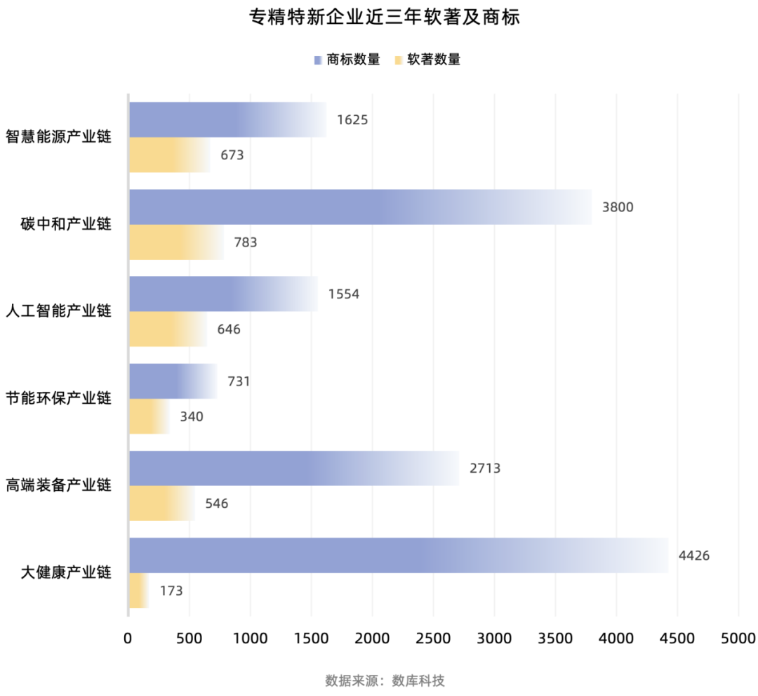 六大產(chǎn)業(yè)鏈上專精特新企業(yè)軟著及商標(biāo)統(tǒng)計(jì)