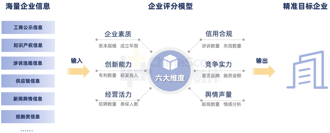 最后,在落地應(yīng)用上,為挖掘及培育具有潛力的潛在專精特新企業(yè),數(shù)庫科技對(duì)細(xì)分產(chǎn)業(yè)進(jìn)行景氣度評(píng)價(jià),在中觀上對(duì)產(chǎn)業(yè)進(jìn)行量化評(píng)價(jià)并篩選出優(yōu)質(zhì)企業(yè)。進(jìn)而,基于企業(yè)規(guī)模、穩(wěn)定、成長(zhǎng)、財(cái)稅、履約、創(chuàng)新六大維度100項(xiàng)指標(biāo),對(duì)目標(biāo)企業(yè)進(jìn)行多維度評(píng)估,綜合構(gòu)建企業(yè)評(píng)價(jià)模型。企業(yè)評(píng)分模型是一個(gè)預(yù)訓(xùn)練模型,在實(shí)際應(yīng)用過程中可以根據(jù)具體的評(píng)價(jià)側(cè)重點(diǎn)進(jìn)行動(dòng)態(tài)配置。例如,在企業(yè)初篩階段,可以負(fù)面指標(biāo)作為訓(xùn)練目標(biāo),剔除不具潛力的企業(yè)。在精選階段,可與現(xiàn)有專精特新企業(yè)的特征構(gòu)建AutoEncoder模型,篩選出精選企業(yè)。