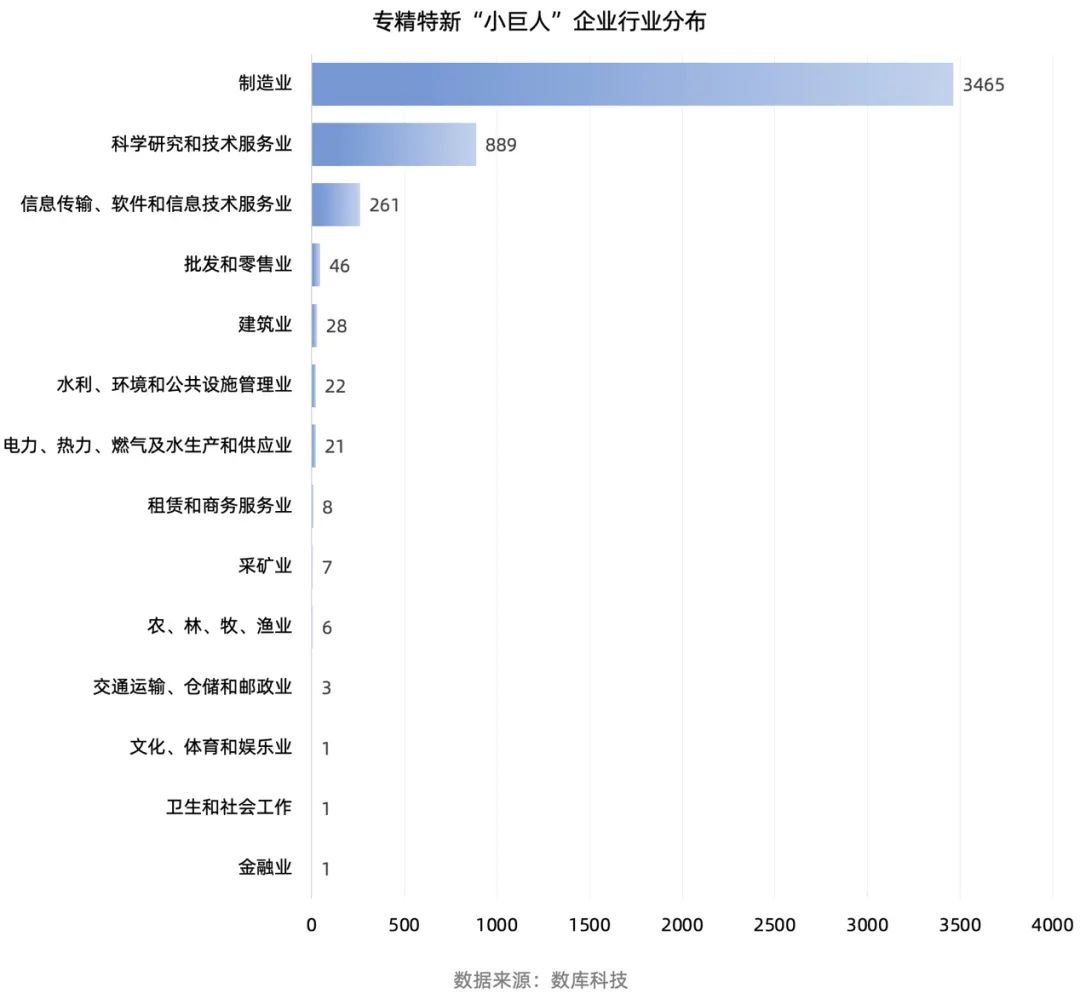 根據(jù)數(shù)庫科技數(shù)據(jù)顯示,專精特新“小巨人”企業(yè)超7成分布在制造業(yè),共計(jì)3465家。其中有40%以上主要分布在專用設(shè)備制造業(yè)、通用設(shè)備制造業(yè)、電氣機(jī)械和器材制造業(yè)三大行業(yè)。