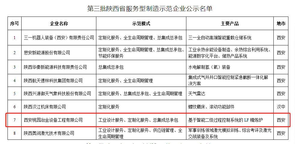 2. 2023年2月,西安桃園冶金榮獲陜西省第三批《省級服務(wù)型制造示范企業(yè)》榮譽(yù)稱號。